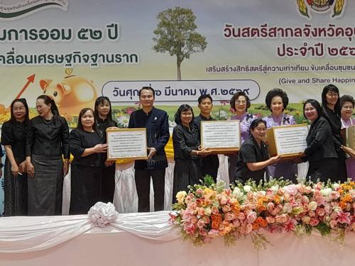 ในโอกาสนี้ ร่วมแสดงความยินดี กับนางสาวชัญญานุช สายทอง นายกเทศมนตรีตำบลนาเยีย (คณะกรรมการพัฒนาสตรีอำเภอนาเยีย) เข้ารับใบประกาศเกียรติคุณสตรีผู้มีผลงานดีเด่น สร้างคุณประโยชน์แก่สังคม ณ หอประชุมจังหวัดอุบลราชธานี โดยได้นำคณะกรรมการพัฒนาสตรีอำเภอนาเยีย จำนวน 3 คน และผู้แทนกลุ่มออมทรัพย์เพื่อการผลิต จำนวน 3 คน เข้าร่วมกิจกรรมและจำหน่ายผลิตภัณฑ์ของกลุ่ม