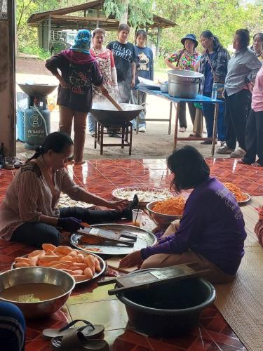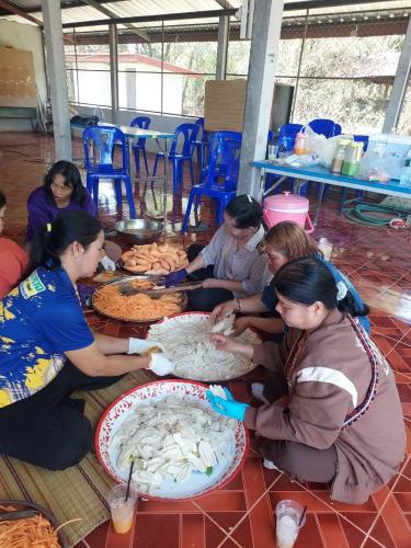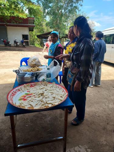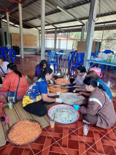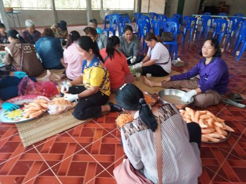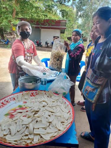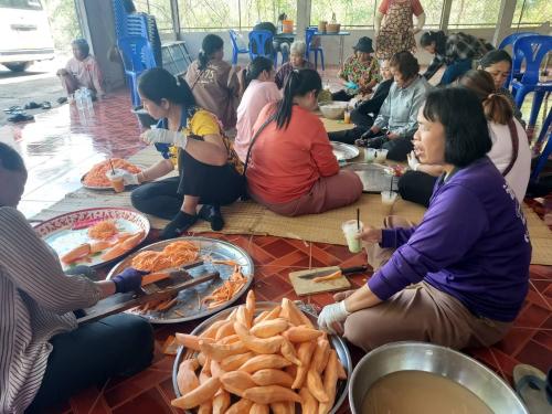 ในโอกาสนี้ได้สาธิตการทำกล้วยฉาบ มันฉาบ แก่ครัวเรือนเป้าหมาย เพื่อนำไปสร้างรายได้แก่ครัวเรือน