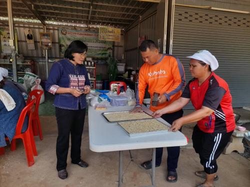 วันที่ 7 มีนาคม 2569 นางมลิวัลย์ ปูคะธรรม พัฒนาการอำเภอนาเยีย มอบหมายให้ นางสุชาดา มณีภาค นักวิชาการพัฒนาชุมชนชำนาญการ ติดตามและสนับสนุนการดำเนินงานของ กลุ่มเป้าหมายที่เข้าร่วมโครงการพัฒนาผลิตภัณฑ์ OTOP กลุ่มปรับตัวสู่การพัฒนา (Quadrant D) ให้มีคุณภาพมาตรฐาน ประจำปี พ.ศ.2569 ร่วมกับนักวิชาการจากมหาวิทยาลัยราชภัฏอุบลราชธานี คือ กลุ่มวิสาหกิจเกษตรแปลงใหญ่อำเภอนาเยีย หมู่ที่ 1 บ้านนาเยีย ตำบลนาเยีย อำเภอนาเยีย จังหวัดอุบลราชธานี โดยนายสุกรรณ์ พิลาล้ำ ประธานกลุ่มและสมาชิกกลุ่มให้การต้อนรับ รวมทั้งสาธิตการทำกระยาสารท โดยนำข้าวเหนียว กข. ถั่ว งาขาว ที่เป็นผลิตภัณฑ์หลักของกลุ่มมาแปรรูปเป็นกระยาสารท ณ ที่ทำการกลุ่ม